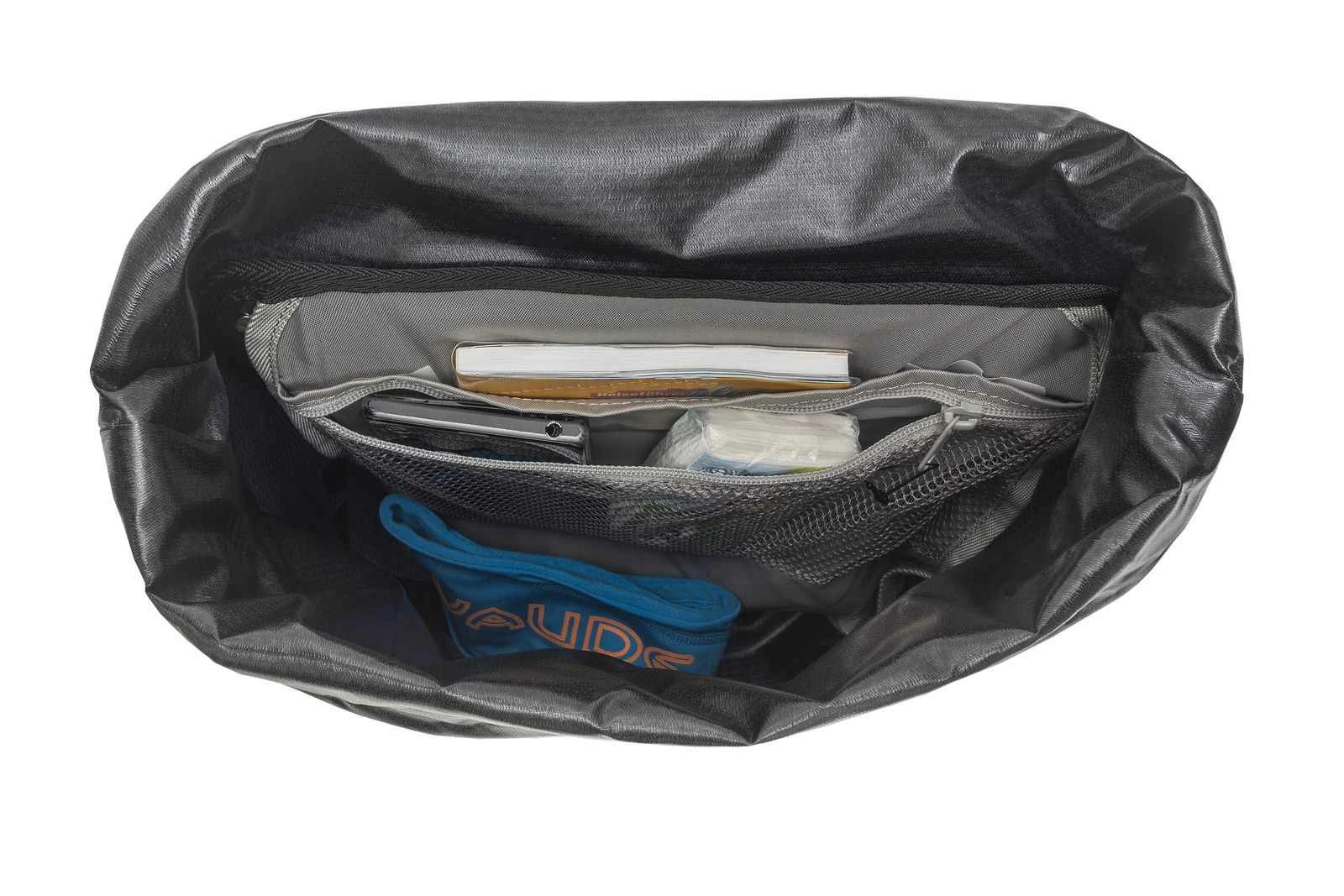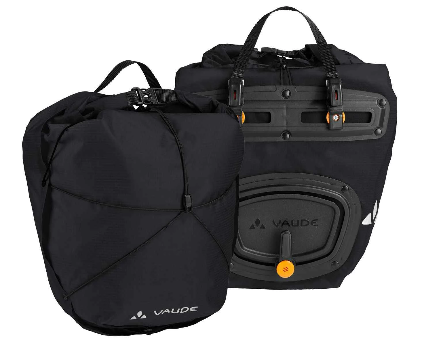 Erfahrene Radreisende kennen es bereits: Während man beim Packen auf möglichst leichte Gadgets setzt, treiben die Taschen das Gewicht mächtig in die Höhe. Mit den Seitentaschen AQUA LIGHT verzichtet VAUDE auf unnötigen Ballast. Denn um die Gewichtsvorgaben zu erreichen, haben sich die Produktmanager von VAUDE auf die essentiellen Funktionen und durchdachte Detaillösungen konzentriert. Die Vorderradtaschen haben ein Volumen von 22 Litern. Verschlossen werden die Taschn mit einem Rollverschluss. Die Taschen sind 100 % wasserdicht und halten den Inhalt auch vor gröberen Regenschauern trocken. Das Hakenssystem ist werkzeuglos verstellbar und lässt sich mit optionalem Schloss abschliessen.Die Taschen werden nach GREENSHAPE 2.0-Krieterien in Deutschland hergestellt. 1000g/Paar. (D)