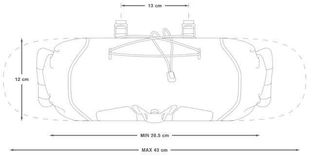 - Masse: H:12cm, B: min. 28.5cm, max. 43cm