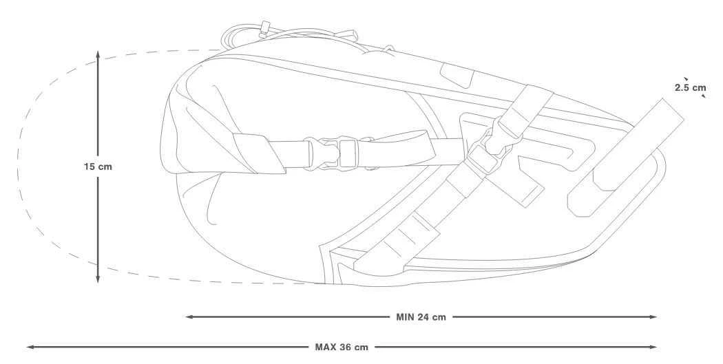 Das Backcountry Saddle Pack ist die Satteltasche für Abenteuer abseits der Strasse. Das Dreipunkte-Fixiersystem hält die Tasche dort, wo sie hingehört, auch wenn der Trail mal etwas holprig wird. Auf der Tasche sind ein Gummizug für Kleinigkeiten und eine Lasche für ein Rücklicht eingenäht. Wie es sich gehört, sind sämtliche Nähte verschweiss und die verwendeten Stoffe sind wasserdicht. 24-36x15x16cm. Volumen 6l. 290g.