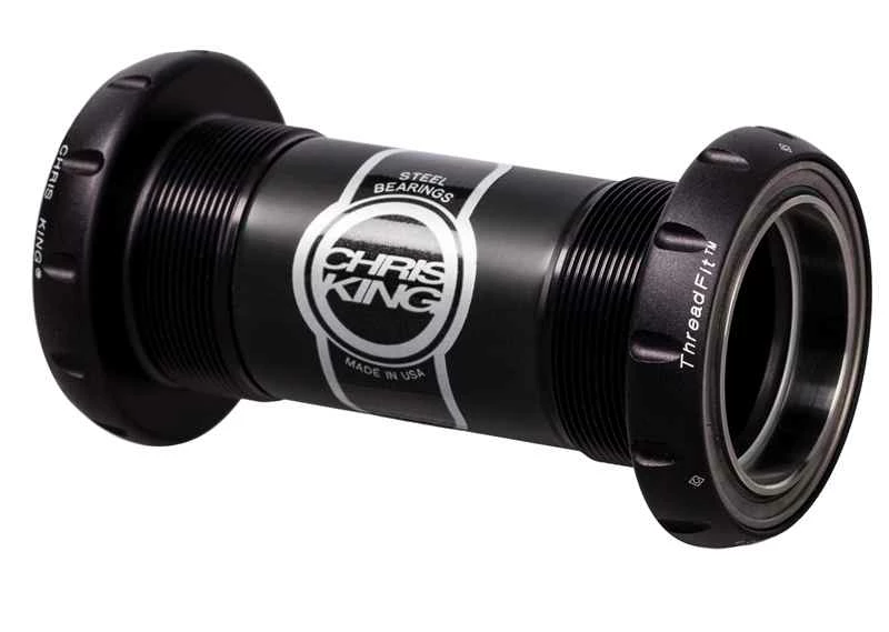 Chris King definiert betreffend Lagern an Naben, Steuersatz und Tretlager seit 40 Jahren den Standard, an dem sich die Konkurrenz messen lassen muss. Alle Teile inkl. Lager stammen aus eigener Fertigung. Es wird grosser Wert gelegt auf umweltschonende Produktionsmethoden und Recycling der beim Drehen aus dem Vollen anfallenden Metallabfälle. Wie bei den Steuersätzen und Naben ist die Lagerqualität kompromisslos und sorgt garantiert für jahrelangen Leichtlauf. Der Finish ist makellos. Einzig schade, dass das Tretlager am Velo nicht besser sichtbar ist. (USA)