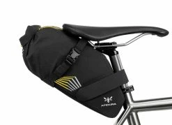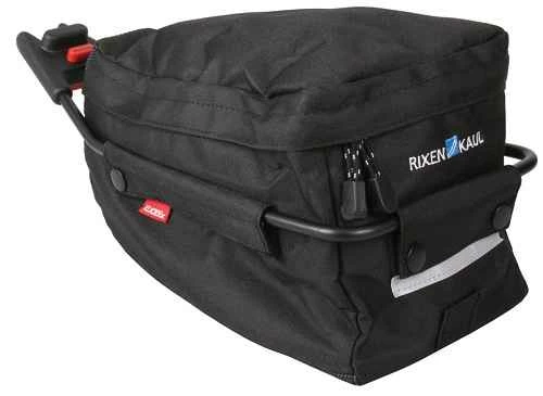Diese mittelgrosse Sattelrohrtasche bietet mit 5 Litern Inhalt viel Platz für Werkzeug, Znüni, Windschutz etc. Sie wird mit dem KlickFix-System am Sattelrohr montiert (Ø 25-32mm). Die Tasche wirkt auch als einfaches «Schutzblech». Ein Druck auf die rote Taste reicht zum Abnehmen der Tasche vom Velo. Der abgedeckte Rundum-Reissverschluss schützt den Inhalt vor Nässe. Inhalt 5 Liter. 440g.