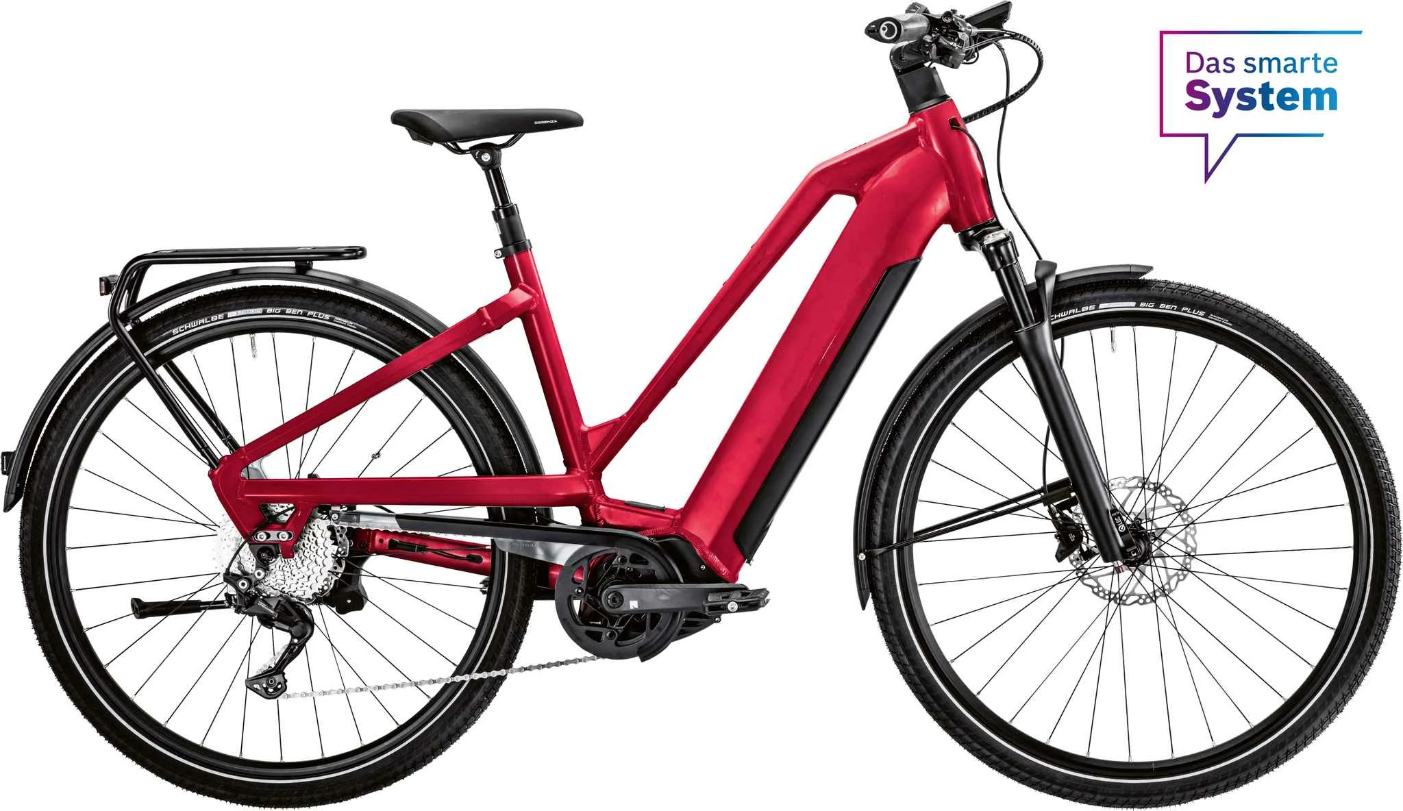 Damit auch alles mitgenommen werden kann, kommt das Velo mit Systemgepäckträger, an welchem Taschen und Körbe bequem und sicher befestigt werden können.