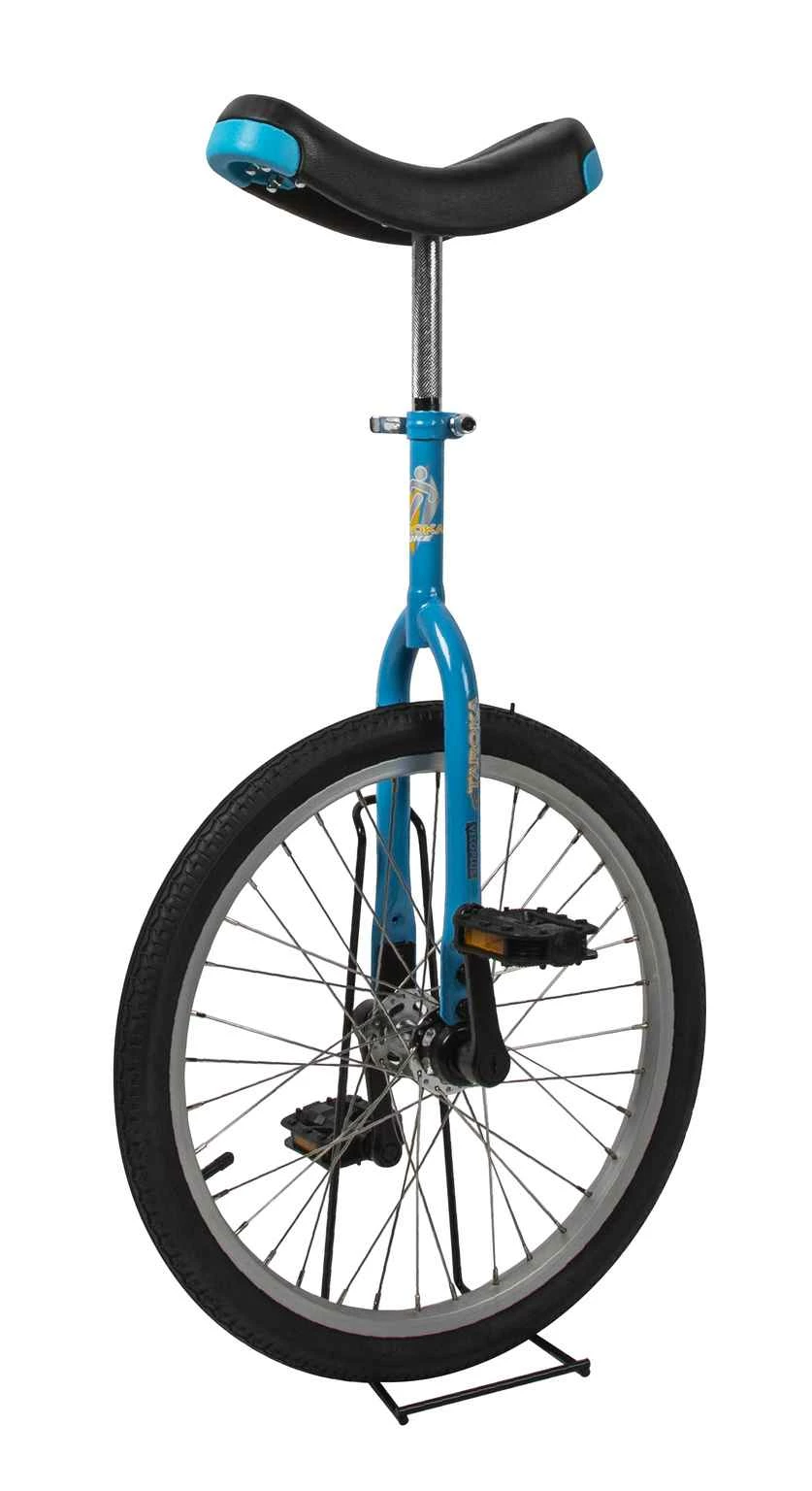 Einradfahren macht Spass, aber erst wenn Sie das Einrad beherrschen. Wichtigste Voraussetzungen, um unfreiwillige Abstürze vom Einrad zu vermeiden, sind gutes Gleichgewicht und Kondition, gepaart mit einem starken Willen. Natürlich muss das Einrad stabil sein und Ihrer Grösse entsprechen. Wenn Sie auch noch vorwärtskommen wollen, dann empfiehlt sich ein Einrad mit grösserem Rad. Alle Modelle verfügen über eine lange 360mm Sattelstütze, so dass auch Erwachsene fahren können. Für kleingewachsene Personen oder Kinder kann die Sattelstütze abgesägt werden. Wir haben starke, hochwertige Einräder, die einiges aushalten. Robustes 16″ Laufrad mit 28 Speichen; Spezialachse mit gedichteten Industriekugellagern; Pedalarme aus Stahl auf Steckkonus; Kunststoffpedalen. 3.96kg. (RC)