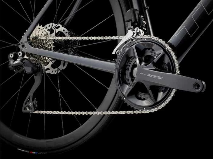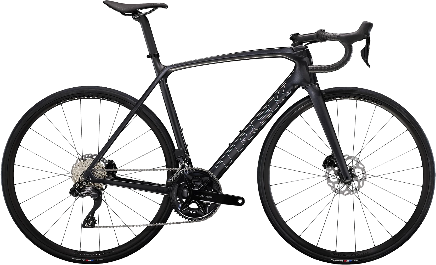 Das Rennvelo kommt mit einem leichten und aerodynamischen Rahmen aus 500 series OCLV Carbon, einer kompletten elektrischen 105 Di2 2×12 Schaltgarnitur und hochwertigen Carbon Bontrager Paradigm Comp-Laufrädern.