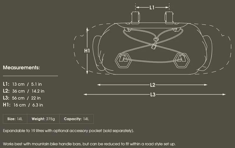 Wem 14 Liter Volumen noch nicht genug sind, kann die Lenkertasche noch mit dem ACCESSORY POCKET (1060833) um weitere 5 Liter ergänzen.