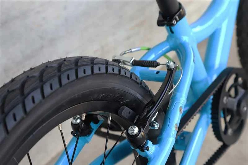 Der von Veloplus entwickelte Riemenantrieb entspricht dem neuesten Stand der Technik. Kein Dreck, kein Nachölen, kein Rost. Durch die Kombination mit der Nabenschaltung kann kein Wechsler kaputtgehen und das Kind kann die Schaltvorrichtung spielend einfach bedienen.