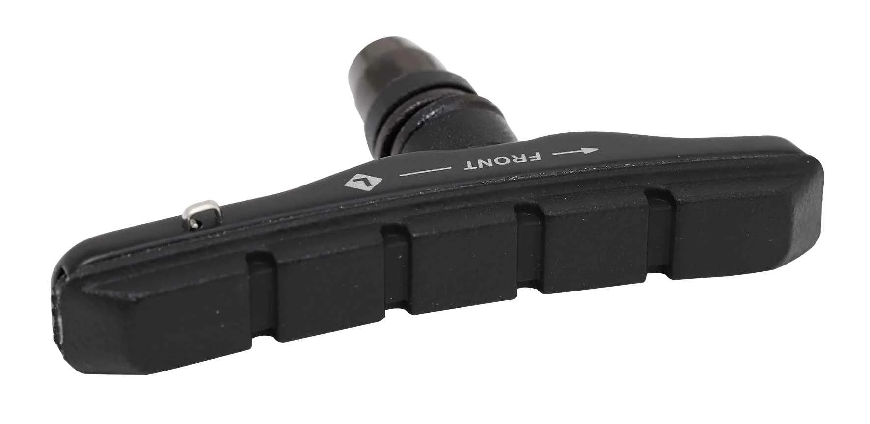 Cartridge Bremsschuh mit erstaunlichen Bremswerten, der praktisch an keinem Velo quietscht. Die Beläge verzögern sicher bei allen Verhältnissen. Der Bremsschuh ist aus geschmiedetem Alu, schwarz eloxiertem Alu. Der Befestigngsbolzen ist bremsschuhseitig 4eckig, so ist sichergestellt, dass der Schuh beim Bremsen mit Sicherheit nicht abkippen kann. (RC)