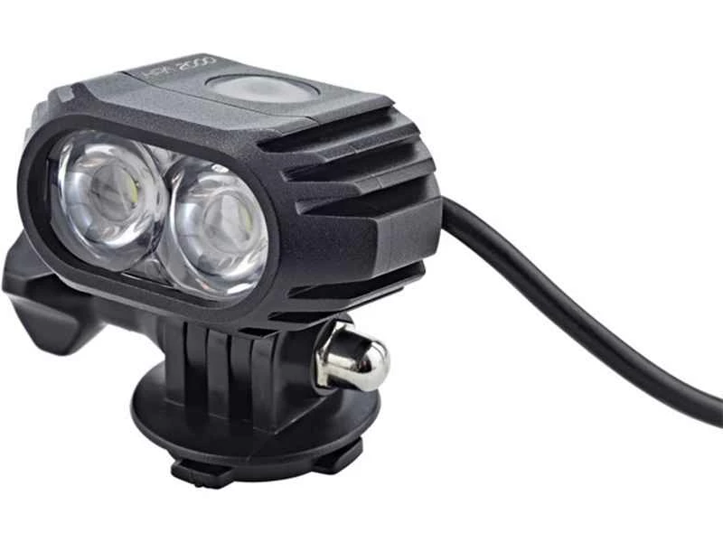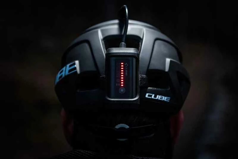Mit den beiden CREE-LEDs, im ultra kompakten Lampenkopf aus Aluminium, leuchtet die HPA 2000 Traillampe die Umgebung sehr hell und homogen aus. Die gesamte abgegebene (gemessen) Lichtmenge beträgt maximal 2000 Lumen. Der Lampenkopf wird sehr einfach und schnell am Helm befestigt. Der ebenfalls sehr kompakte 3.4Ah-Panasonic-Akku kann einfach am Helm befestigt werden. Somit hat man keine störende Kabelverbindung vom Helm runter in den Rucksack. Die Leuchtdauer beträgt ca. 2 Stunden auf hellster Stufe. Die verbleibende Kapazität ist am Akku per LEDs bequem ablesbar. Der Indikator kann sogar als Rücklicht genutzt werden. Die drei Leuchtstufen werden per Knopfdruck durchgeschaltet und dies ganz praktisch per Fernbedienung vom Lenker aus. Das System ist kompatibel mit GoPro Halterungen. Die Leuchtdauer auf folgenden Stufen beträgt: High: ca. 2 Std., Mid: ca. 4 Std., Low: ca. 8 Std., Ultra Low: ca. 30 Std., Flash: ca. 6 Std., S.O.S.: ca 13 Std., Alpines Notsignal: 105 Std.