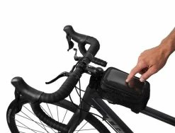 Dank unserem HUMP BAG behalten Sie das Smahrtphone immer im Blickfeld! Der Touchsreen ist auch durch das Sichtfeld bedienbar und ist somit auch in der Tasche nutzbar. Befestigt wird der HUMP BAG mit zwei gummierten Klettbänder am Oberrohr und einem ebenfalls gummierten Kelttband am Vorbauschaft. Die Oberrohrtasche hält dadurch auch bei sehr ruppigen Ausfahrten. Dank wetterfesten Reissverschlüssen und einem wasserabweissendem Nylongewebe bleibt der Inhalt auch bei kleinen Regenschauern trocken. Unter dem praktischen Smartphone-Fach befindet sich ein weiteres Fach. Darin finden beispielsweise Pufferakku, Riegel, Portemonnaie oder eine Digitalkamera platz. Durch die Position am Oberrohr sind alle darin enthaltenen Gegenstände immer schnell zur Hand! 126g. (CN)