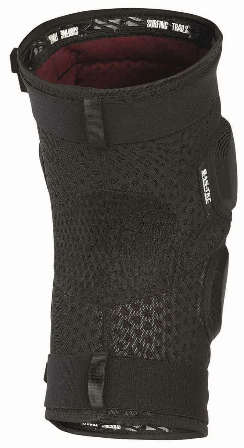 Der K_PACT_AMP Knieschoner lässt sich per seitlichen Reissverschluss ganz öffnen. Das umständliche An- und Abziehen der Schuhe entfällt. Anzieh-Tipp: Reissverschluss auf Wadenhöhe schliessen, dann erst den Protektor übers Knie ziehen. 2 Klettbänder fixieren den Schoner. 543g (M).