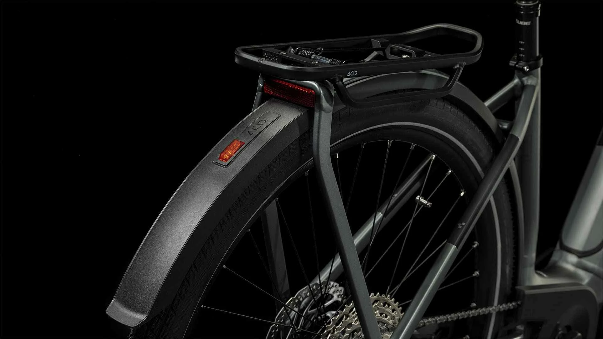Hydraulische Scheibenbremsen, integrierte Lichtanlage, Seitenständer und Schutzbleche runden das Modell optimal ab und man ist für jede Wetterlage gewappnet. Das tiefgezogene Oberrohr ermöglicht das einfache Auf- und Absteigen vom Fahrrad, was Personen mit Hüft- oder Knieproblemen entgegenkommt.
