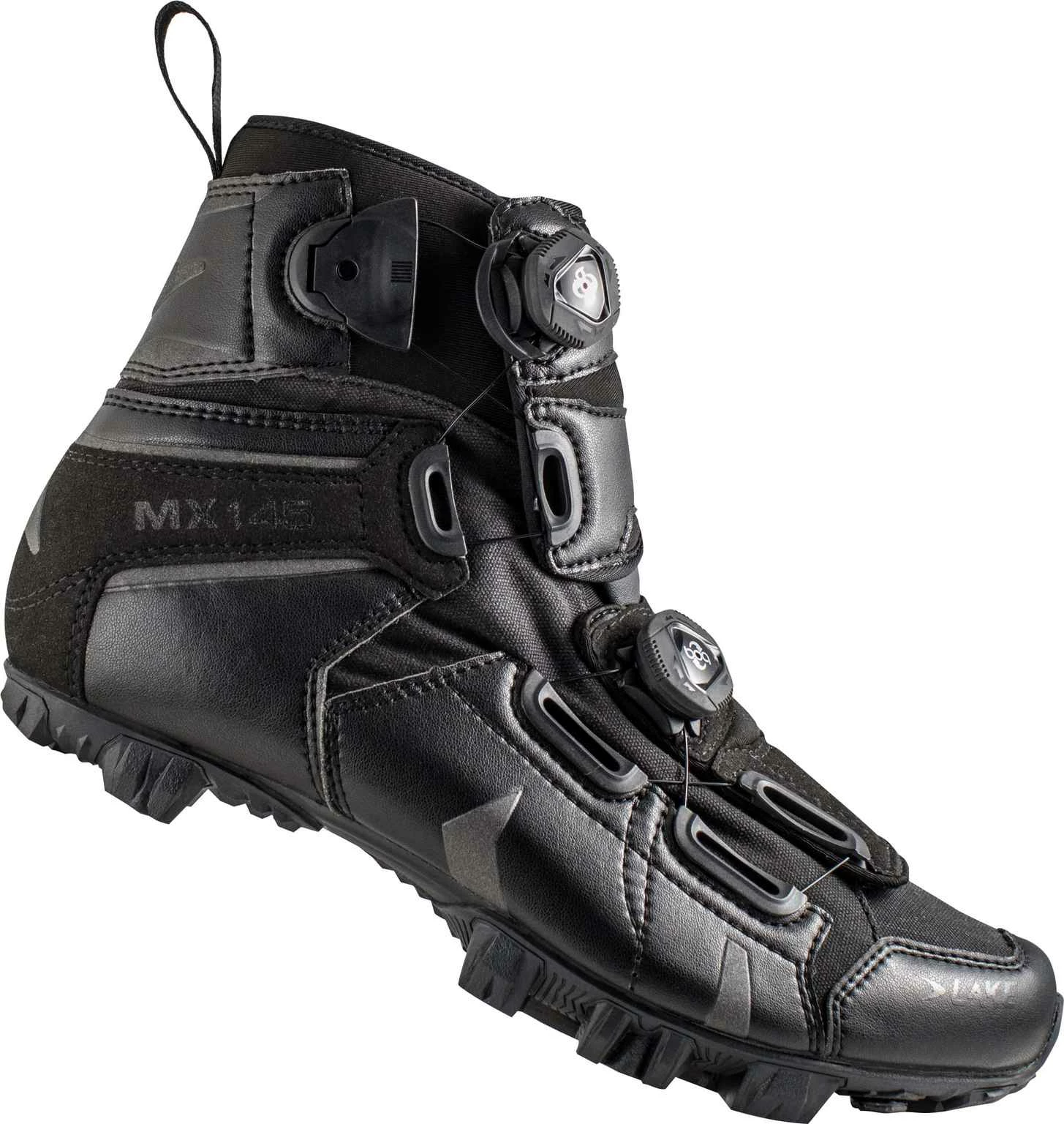 Mountainbiken bei Wind und Wetter, das ermöglichen der MX 145 Bike-Winterschuh von LAKE mit Hypergrip Enduro-Sohle. Das gewachste Canvas und die wasserdichte Membrane hält die Füsse auch bei Regen- oder Schneeschauern trocken. Der BOA-Verschluss ermöglicht millimetergenaues Justieren und schnelles Öffnen mit einem Knopfdruck. Gemütlich warme Füsse bis zu -4°. Mit dem Zweiloch-Cleat-System passt der Schuh für alle gängigen Mountainbike Pedalsysteme (SPD). 1040g/Paar (Grösse 43). (CN)