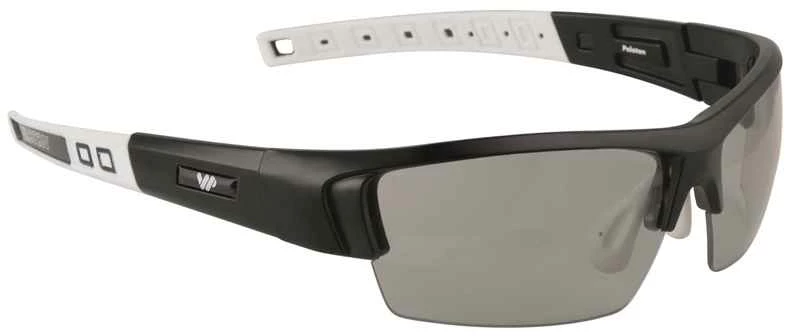 Die Peloton ist wie geschaffen für Biker und Rennvelofahrer! Dieses Brillen-Set beinhaltet zwei auf UV-Einstrahlung reagierende, photochromatische Wechselgläser. Ideal für sonnige Sommertage ist das graue Glas mit einem Transmissionsgrad von 50% bis 24% des Restlichts. An etwas stärker bewölkten Tagen kann dieses gegen das hellere orange Wechselglas getauscht werden, welches dem Auge von 58% bis 34% Restlich überlässt. Beide Gläser schützen 100% vor UV-Strahlung bis 400Nm. Gummierte, flexible Bügelenden und ein verstellbarer Nasensteg sorgen für optimalen Sitz. Inkl. Hardcase und Microfaserbeutel. Rahmen: matt-schwarz/weiss. B = 13.7cm. 24g. (RC)