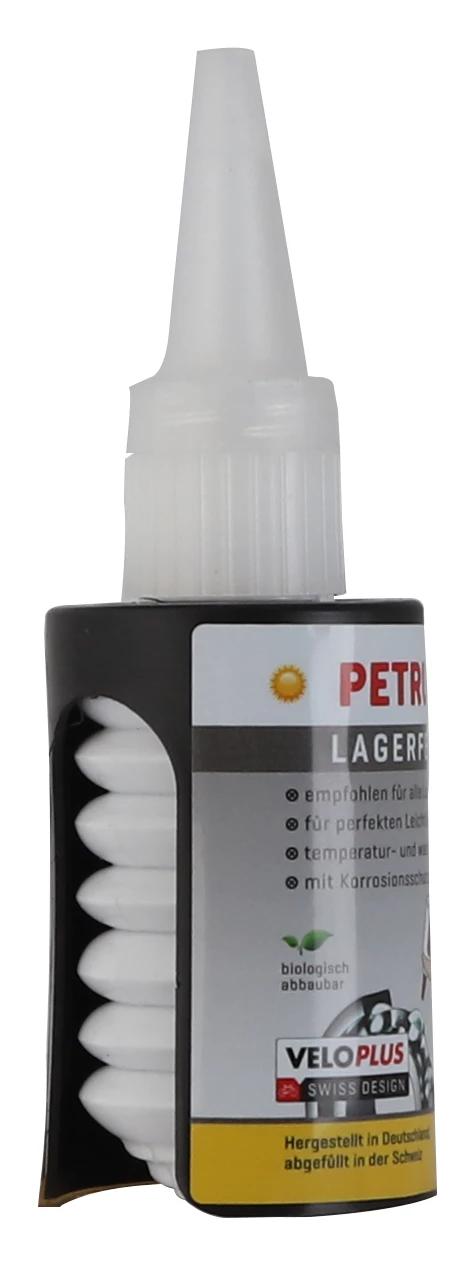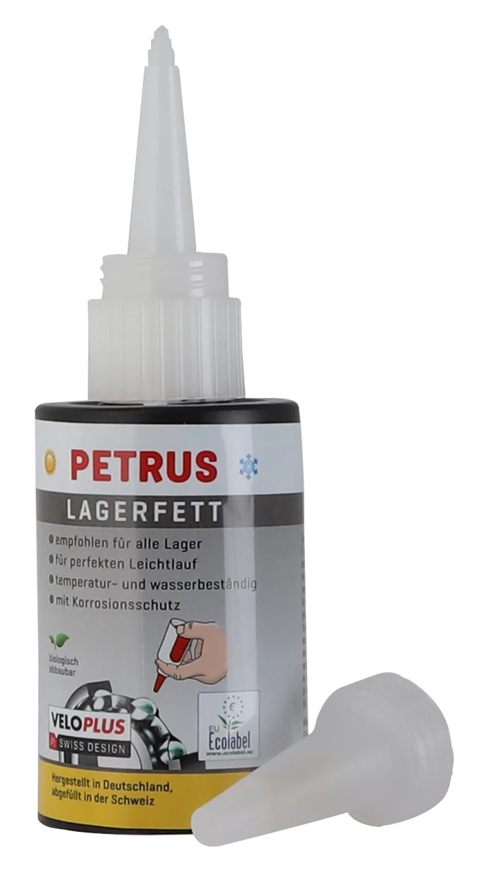 Bio-Lagerfett aus 83% nachwachsenden Rohstoffen. Garantiert Leichtlauf, Druckbeständigkeit und reduziert am Velo den Verschleiss.