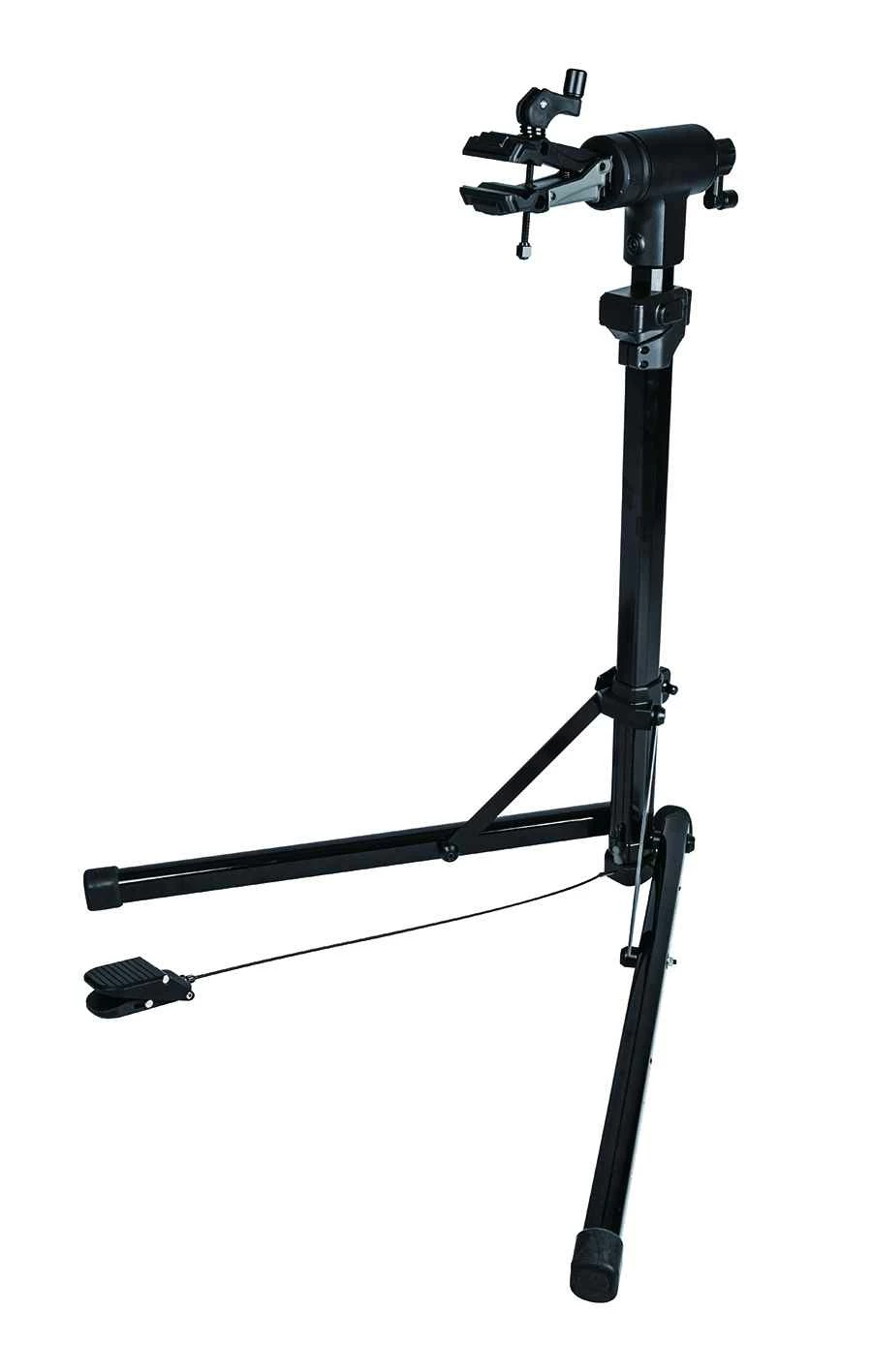 Eine per Fusspedal bedienbare Gasdruckfeder hilft mit einer Kraft von 17kg beim Heben und Absenken des Velos. Bei E-Bikes mit einem Gewicht über 17kg muss die Gewichtsdifferenz mit eigener Muskelkraft angehoben werden. Zum Einspannen ist das Velo auf die Mindestauszugshöhe von 107cm anzuheben. Der um 360° stufenlos schwenkbare Montagearm mit Schonbacken klemmt Rohren mit Ø 22.2–76.2mm. Der Montagearm kann für ergonomisches Arbeiten bis auf eine Höhe von 149cm ausgefahren werden. Eine Rolle mit Ø 10cm am Fuss erleichtert das Verschieben an einen anderen Standplatz. Die extra langen Füsse geben eine ausgezeichnete Standsicherheit. (RC)