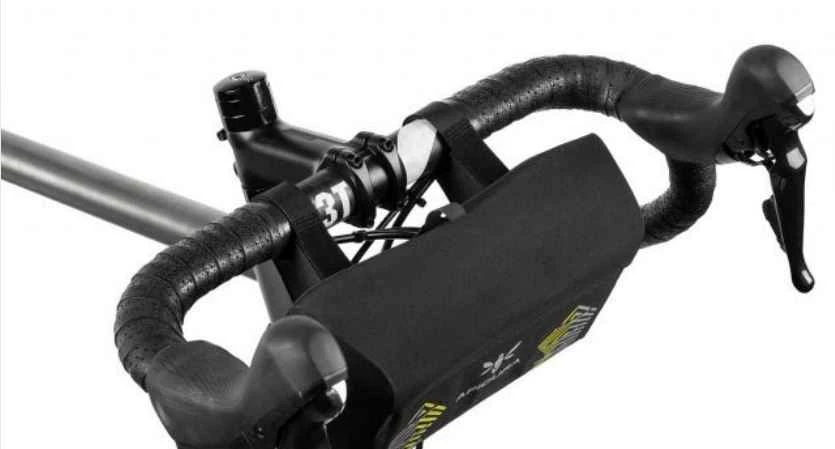 Das ultraleichte Handlebar Pack für leichte Rennvelos! Das nur 160g schwere Racing Handlebar Pack wurde extra für Langdistanzrennen entwickelt. Die Tasche ist aus wasserdichtem Hexalon hergestellt und kann auch während der Fahrt bedient werden. In den 2.5l Fassungsvolumen können Snacks, packbare Kleidungsstücke oder andere wichtige Gegenstände deponiert werden. Mit den zugehörigen Lenkeradaptern kann die Tasche entweder direkt am Lenker oder mit ca. 5cm Abstand montiert werden. So können allfällige Acessoires wie Lichter oder Velocomputer einfacher angebracht werden, ohne mit dem Handlebar Pack zu interferieren. 22.5x14x7.5cm. Volumen 2.5l. 160g.
