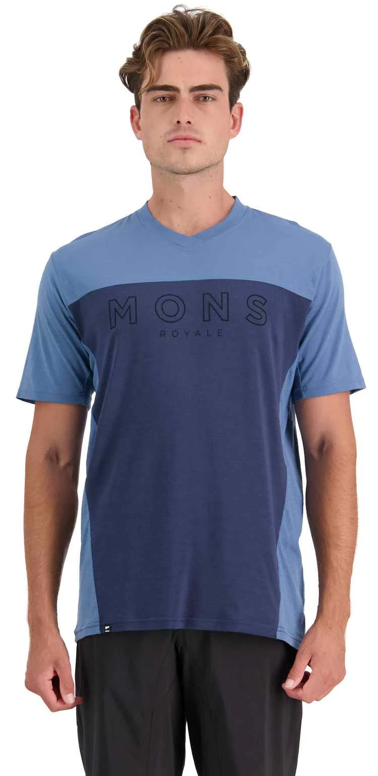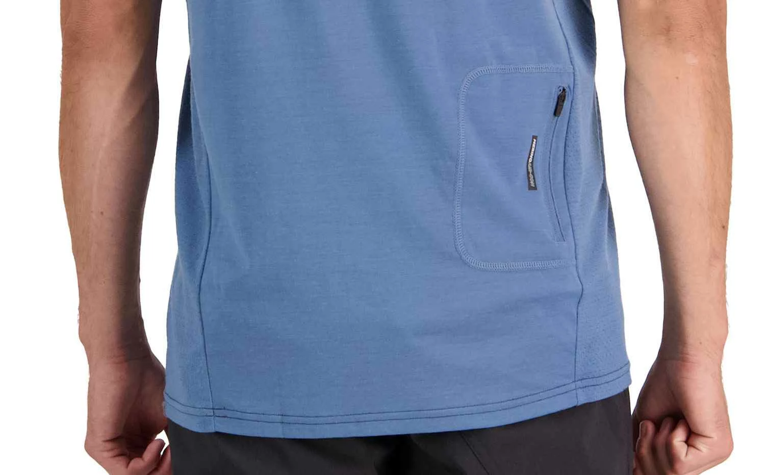 Der Shirt-Klassiker von Mons Royale ist der ideale Begleiter bei jedem Mountainbike-Abenteuer. Das Oberteil besteht hauptsächlich aus Merinowolle. Diese ist atmungsaktiv und verhindert, dass unangenehme Gerüche entstehen. Mesh-Einsätze sorgen für zusätzliche Belüftung und bestes Klimamanagement. Das integrierte Brillenputztuch hilft, den Durchblick zu wahren. In der kleinen Reissverschlusstasche lässt sich das Liftticket verstauen.