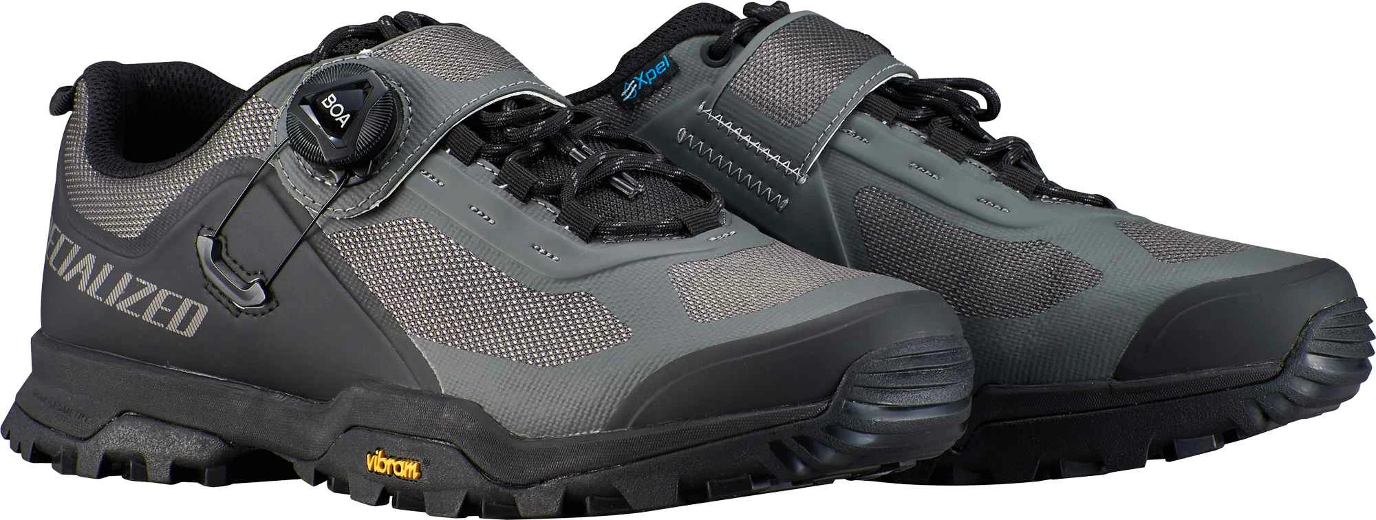 Der RIME 2.0 von SPECIALIZED wurde konzipiert für alpines Terrain. Die Vibram-Gummisohle bietet besten Grip auf Schiebe- oder Tragepassagen. Die Kombination mit BOA-Verschluss und normaler Schnürung garantiert besten Halt. Die EVA-Zwischensohle sorgt für Dämpfung beim Laufen. Dank Versteifung im Pedalenbereich wird trotzdem beste Kraftübertragung erreicht. Ausgestattet mit dem speziellen X-PEL Obermaterial nimmt der RIME 2.0 sehr wenig Feuchtigkeit auf und trocknet extrem schnell. Mit dem Zweiloch-Cleat-System passt der Schuh für alle gängigen Mountainbike Pedalsysteme. 768g/Paar. (CN)