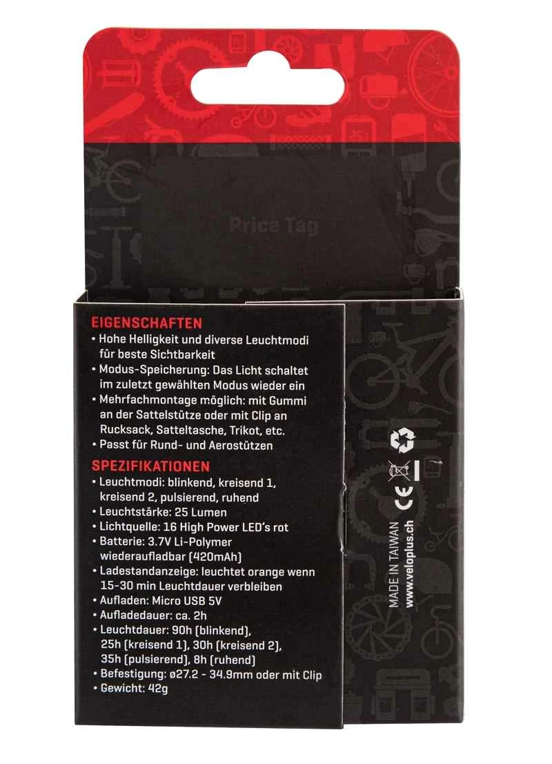 Das erst Rücklicht der VELOPLUS SWISS DESIGN Familie. Das Rücklicht mit seiner runden Form geht neue Wege in Sachen Leuchtmodi, Akkulaufzeit und Montagemöglichkeiten!