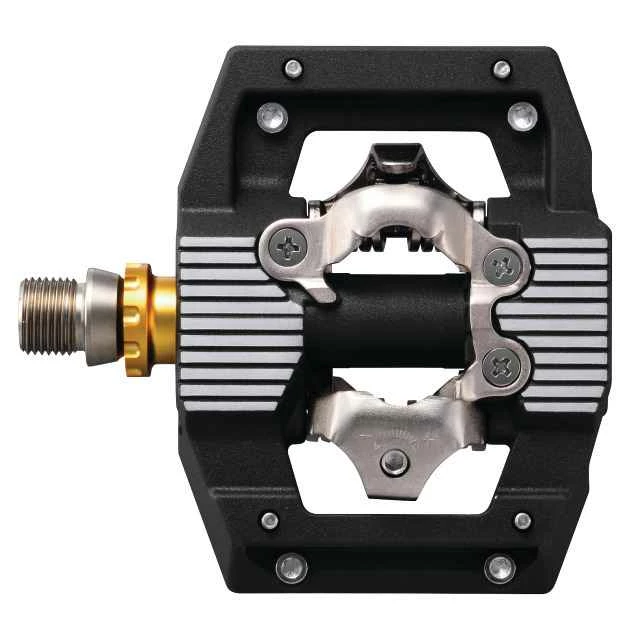 Gemacht für den harten Geländeeinsatz: Das «Low Profile Design» verringert den Abstand zu Hindernissen und das Gewicht des Pedals. Der fixierte Klick-Mechanismus macht es stabil und wartungsarm. Damit trotzdem eine optimale Auflage für den Schuh vorhanden ist, sind die vier Pins pro Seite höhenverstellbar.