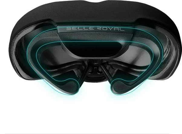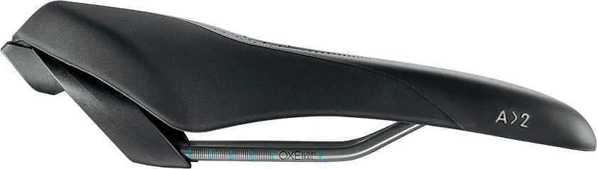 Der Heckbereich ist leicht erhöht, was eine zusätzliche Entlastung für den Damm- und Schambereich bedeutet. Falls doch Kontakt des Weichgewebes mit dem Sattel stattfindet, wird der Bereich durch das 3D Skingel effektiv gedämpft und der Druck gleichmässig verteilt. Die Sattelstreben sind im hinteren Bereich gebogen und ermöglichen dadurch eine Stossdämpfung für die Sitzknochen. Das Modell A2 ist geeignet für eine etwas sportlichere Sitzposition.
