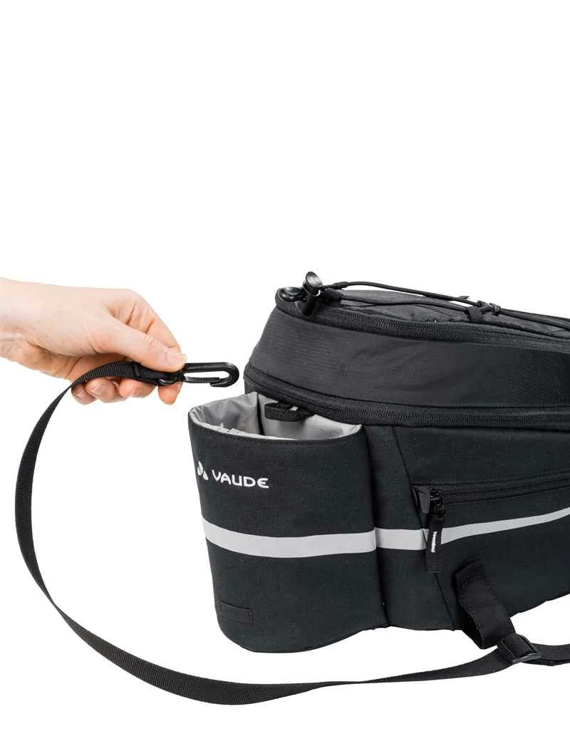 Ideal für Tagestouren! Diese Universaltasche mit max. 11 Litern Volumen kann dank SNAP-IT-Platte auf RACKTIME-Gepäckträgern befestigt werden. Die beiden kleinen Seitentaschen fassen je 0.5 Liter. Mit einem Kompressionsreissverschluss lässt sich das Volumen um ca. 2 Liter vergrössern. Ein Bidon lässt sich im hinten angebrachten Fach verstauen. Reflektorpunkte sorgen für Sicherheit im Dunkeln. Inklusive abnehmbarer Innenbeutel, Gummizug auf dem Deckel für Kleider oder Helm, Schulterriemen und leuchtend orange abnehmbare Regenhülle. 20x32x17cm. 575g. (CN)