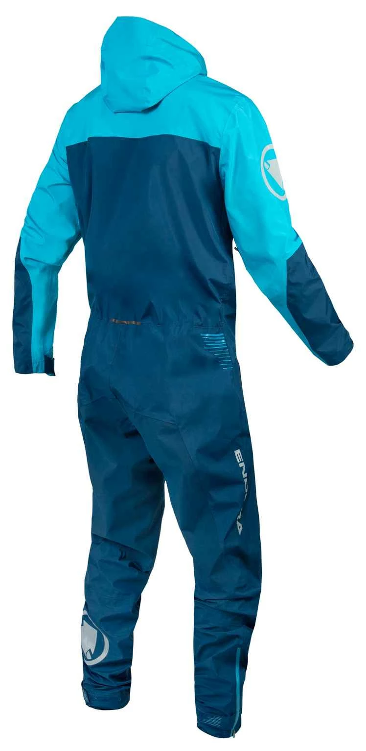 Das 3-Lagen-Material ist atmungsaktiv, wind- und wasserdicht. Der Overall verfügt über eine bequeme Passform und trägt sich angenehm. Sowohl die Kapuze als auch die Ärmelweite sind regulierbar. Ein Reissverschluss unter den Armen lässt sich als Belüftung öffnen und ermöglicht dadurch ein optimales Klimamanagement. In der Brusttasche und den Fronttaschen, kann verstaut werden, was man mitführen möchte. Reflektierende Elemente sorgen für Sichtbarkeit. Fahren im Regen und im Dreck hat noch nie so viel Spass gemacht.