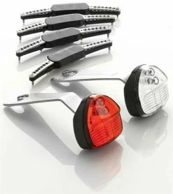 Ohne Batterien, ohne Dynamo und ohne Verdrahtung leuchtet dieses Licht schon nach wenigen Metern Fahrt auf. Die beiden kräftigen Magnete, montiert an den Speichen (bis max. Ø 2.2mm), induzieren im Gehäuse des I-FLASH einen Strom, welcher direkt zu den beiden hellen Dioden geleitet wird. Mit diesen Lichtern wird die gesetzliche Beleuchtungsvorschrift erfüllt. Kein Standlicht. Geeignet für Velos mit Scheibenbremsen bis max. 160mm. Montageprobleme gibt’s bei gewissen Federgabeln und speziell gestalteten Ausfallenden. Für eine problemlose Montage sollten diese rund um die Achsaufnahme 9mm flach sein. Am geeignetsten sind wohl «Bahnhofvelos». Komplett mit Vorder-, Rücklicht und 2 Speichenmagneten. 270g.