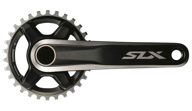 Hohlgeschmiedete 1x11fach-Kurbel mit integrierter Achse im aktuellen SLX-Design. Die Kurbel bietet bei einem nur unwesentlich höheren Gesamtgewicht praktisch die gleichen Features wie die teureren Shimano Modelle. Die Tretlagerachse ist mit der rechten Kurbel fix verbunden. für verlängerte Haltbarkeit ist das mittlere Kettenblatt aus Stahl-Verbundwerkstoff gefertigt. (J)