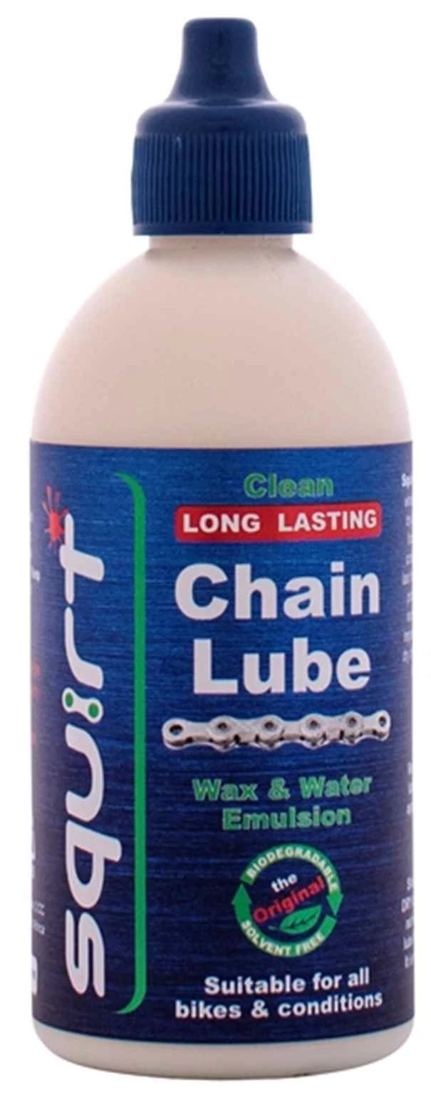Wie Kettenwachs anderer Hersteller hat SQUIRT bei trockenen Bedingungen die beste Performance. Ist Regen angesagt, empfiehlt es sich, das Wachs am Vortag neu aufzutragen. Bei Regen haben Nasschmiermittel tendenziell eine längere Verweildauer auf der Kette.