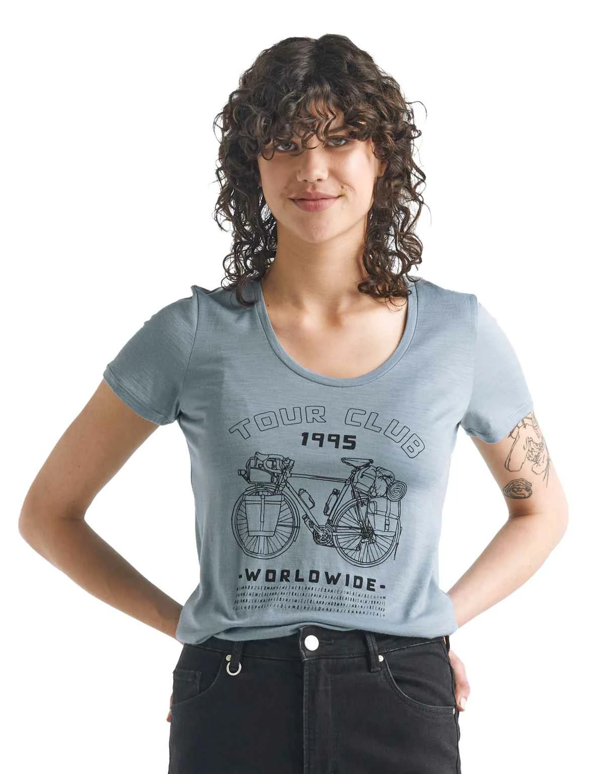 Das Shirt TECH LITE TOUR CLUB 1995 von ICEBREAKER aus feinster Merinowolle kühlt bei hohen Temperaturen und wärmt an kälteren Tagen. Merinowolle neutralisiert unangenehme Gerüche und ist daher sehr geeignet für längere Touren. Der Veloprint zeigt, wofür das Herz einer Radfahrerin schlägt.