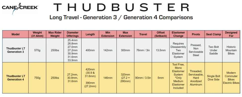 Thudbuster Long Travel geht in die 4te Generation! Seit über 20 Jahren bietet die Thudbuster Sattelstütze Fahrerinnen und Fahrer auf der ganzen Welt unvergleichlichen Komfort. Die neue Thudbuster Sattelstütze ist seinem Vorgänger weit überlegen. Die Sattelstütze verwendet weiterhin die bewährte Parallelkopplungstechnologie, zudem wurde die Lebensdauer verbessert, neu ist ein höheres Fahrergewicht möglich und ein zusätzlichen Federweg. Der Elastomer Wechsel kann ohne Werkzeug durchgeführt werden.