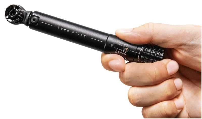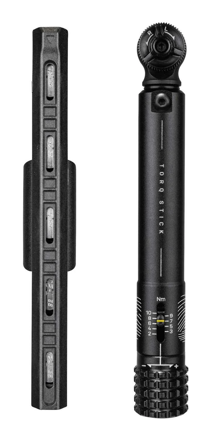Das Drehmoment lässt sich über den Drehgriff am unteren Ende stufenlos zwischen 2-10Nm (Skala 1Nm) einstellen. Ist das Drehmoment erreicht, überschnappt der Kopf für einen Moment. Die Aufnahme für Standard-Bits, ermöglicht es, das Tool jederzeit mit zusätzlichen Bits den wechselnden Anforderungen anzupassen. Mit der geringen Länge von 145mm und einem sensationell tiefen Gewicht von nur 129g (Bits + Halter zusätzlich 43g) ist der TORQ STICK auch bestens als Tourenwerkzeug geeignet. (RC)