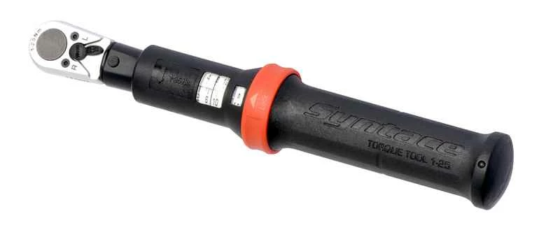 Kompakter und somit sehr handlicher Drehmomentschlüssel mit grossem Drehmomentbereich von Syntace, der im Velobereich ein Klassiker ist.