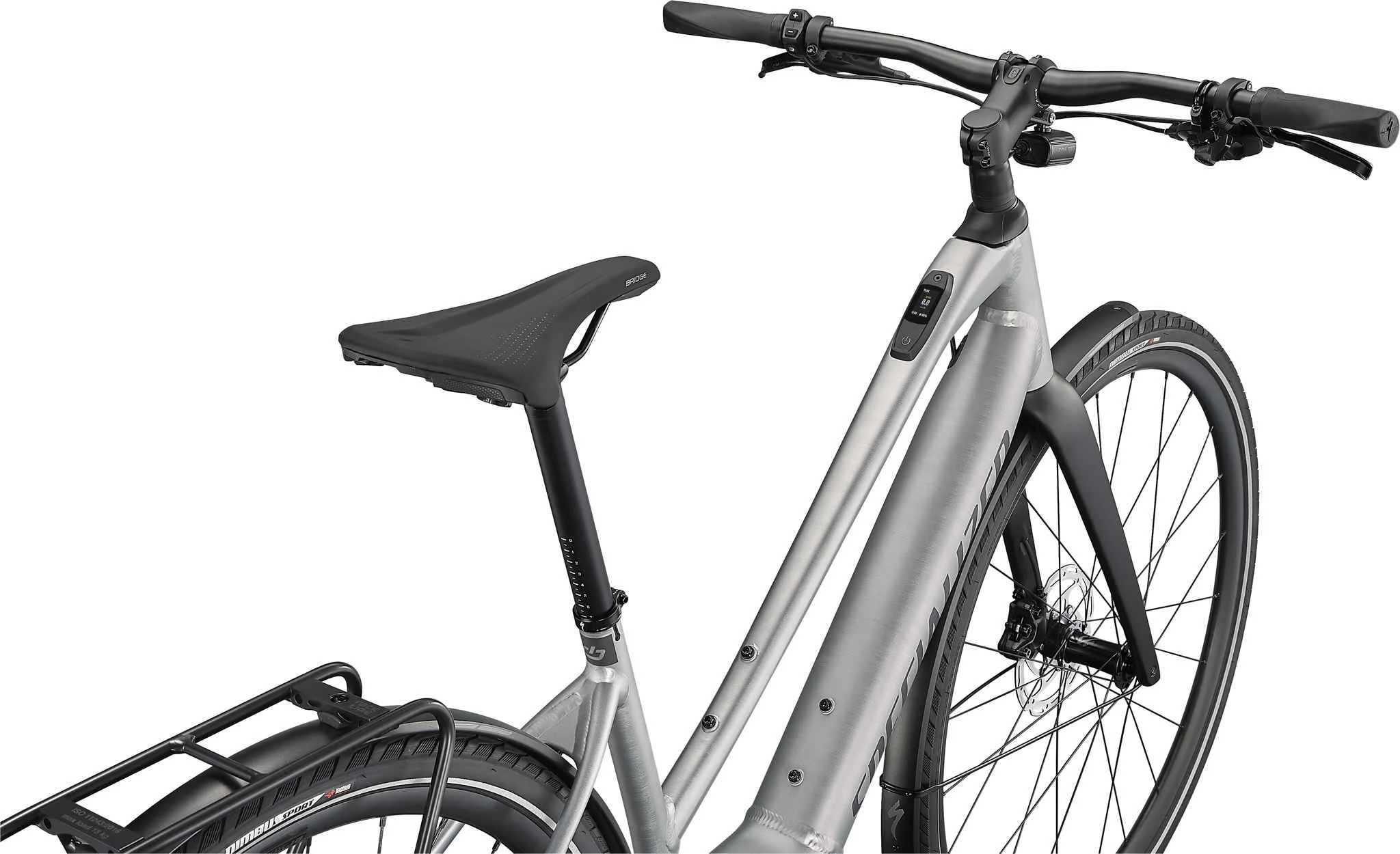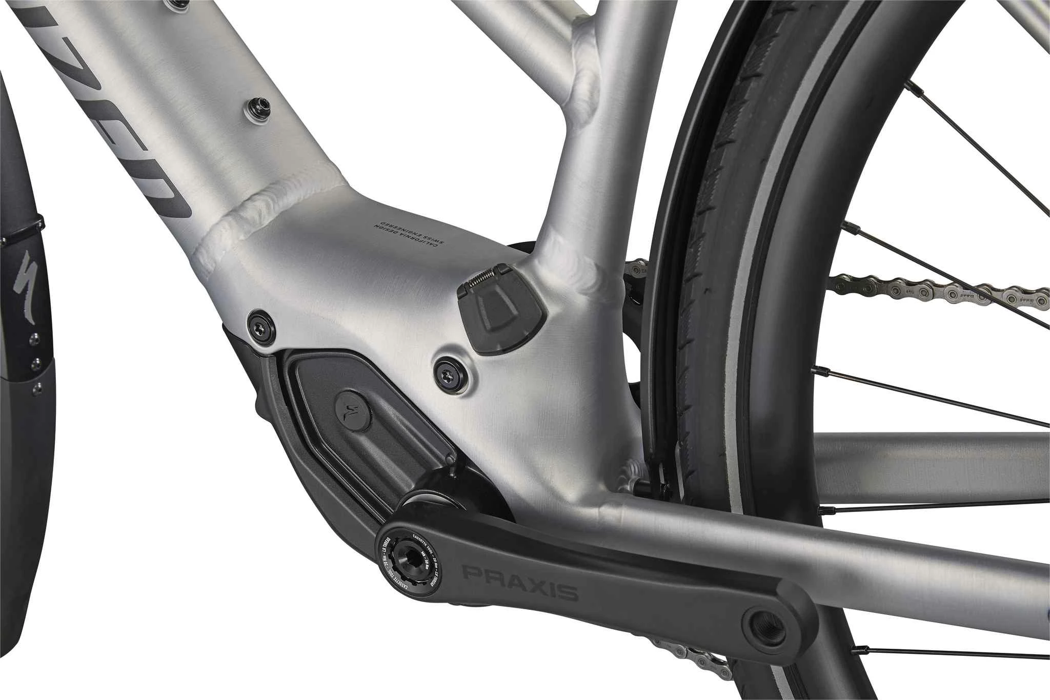 Das VADO SL 5.0 ST EQ vereint Leichtigkeit, Kraft, Reichweite und Fahrspass. Ermöglicht wird dies durch den extrem leichten und leisen Specialized SL 1.1 Motor (35 Nm Drehmoment), der deine eigene Power verdoppelt und für ein natürliches und sanftes Fahrgefühl sorgt. Mit einer Leistung von bis zu 240 Watt und einer Unterstützung bis 25km/h steht einer mühelosen Fortbewegung nichts mehr im Wege. Der vollständig in den Rahmen integrierte 320-Wh-Akku sorgt für ein puristisches Design. In der Farbe Brushed Aluminium bietet das Velo eine coole Optik für den urbanen Alltag.