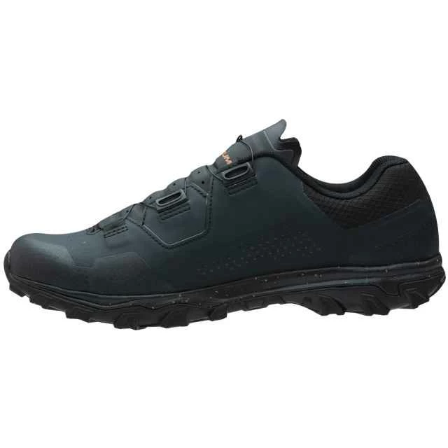Der X-ALP ELEVATE von PEARL IZUMI, ein Mountainbike-Schuh, der Komfort und Effizienz vereint. Zwei BOA IP1-Verschlüsse ermöglichen präzises Feinjustieren für besten Halt. Die griffige Vibram ECOSTEP Aussensohle sorgt für Trittsicherheit und die EVA-Zwischensohle bietet Komfort beim Gehen. Die perforierte Zunge fördert die Atmungsaktivität des Schuhs. Kompatibel mit SPD-Klickpedalen. Der ideale Begleiter für das nächste Trail-Abenteuer. Gewicht: 820g/Paar. (CN)
