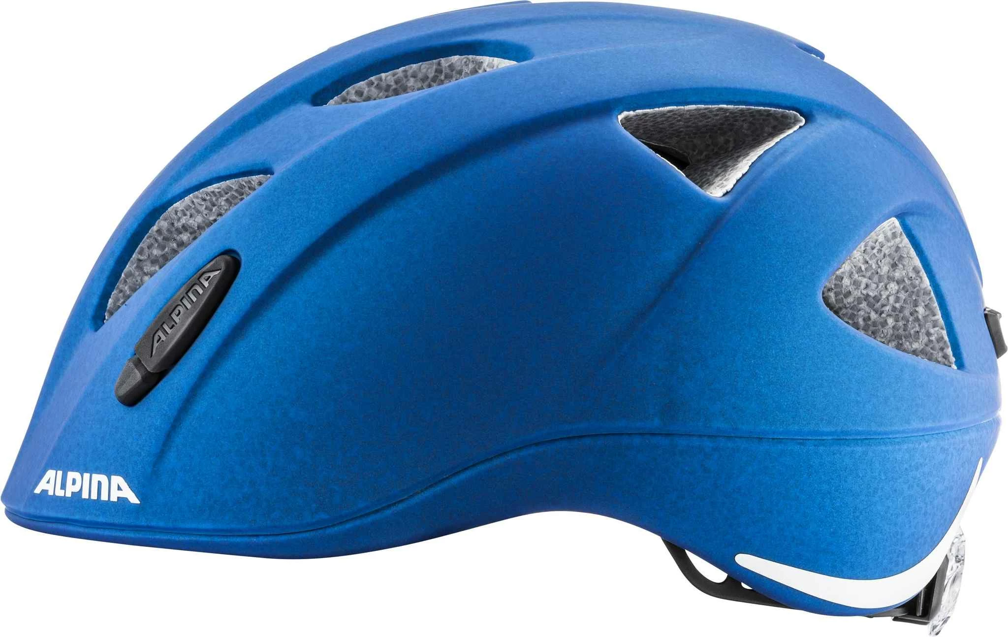 Alpina legt besonderen Wert auf Tragkomfort und Sicherheit. Für eine aufrechte Kopfposition im Kinderanhänger ist der XIMO hinten speziell flach. Zum Schutz vor Dellen rundum geschützt mit einer robusten Polycarbonatschale. Reflektoren hinten seitlich.