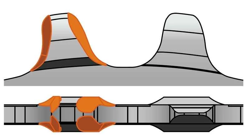 1 x 11 Kettenblatt mit Dynamic Chain Engagement (DCE). Das weiterentwickelte Zahnprofil verbessert nochmals den Halt und die Führung der Kette. Das dreidimensional optimierte Zahnprofil reduziert Abrieb und Verschleiss.