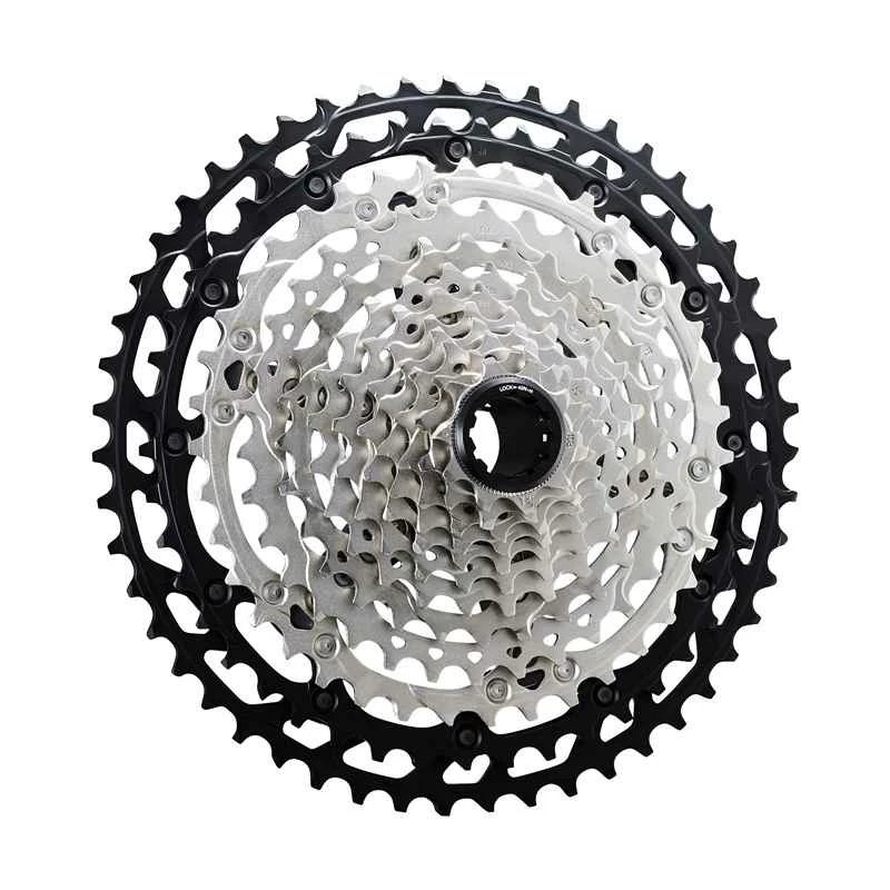 XT 12-fach-Kassette mit Hyperglide+ Kettenmanagment-System der 2. Generation, selbst unter maximaler Last kann jetzt in Steigungen geschaltet werden, ohne dass ein kurzzeitiges entlasten der Kurbel notwendig ist.