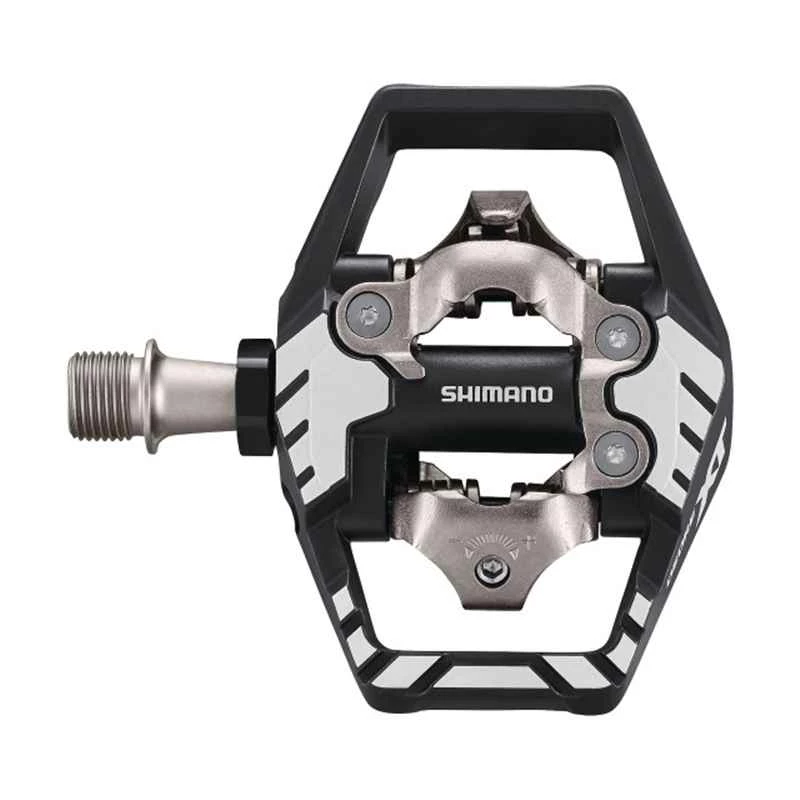 Die Pedalfläche ist nochmals grösser gegenüber dem PD-M8020 Vorgängermodell. Im hinteren Bereich ist eine zusätzliche Kontaktfläche für die Schuhsohle dazu gekommen. Der robuste Alukäfig schützt die Pedalbindung vor Steinen und erleichtert den Einstieg, da sich das Pedal leichter ausrichten lässt. Der Pedalkörper ist um die Achse ovalisiert, um bei schlammigen Bedingungen weniger zu verstopfen.